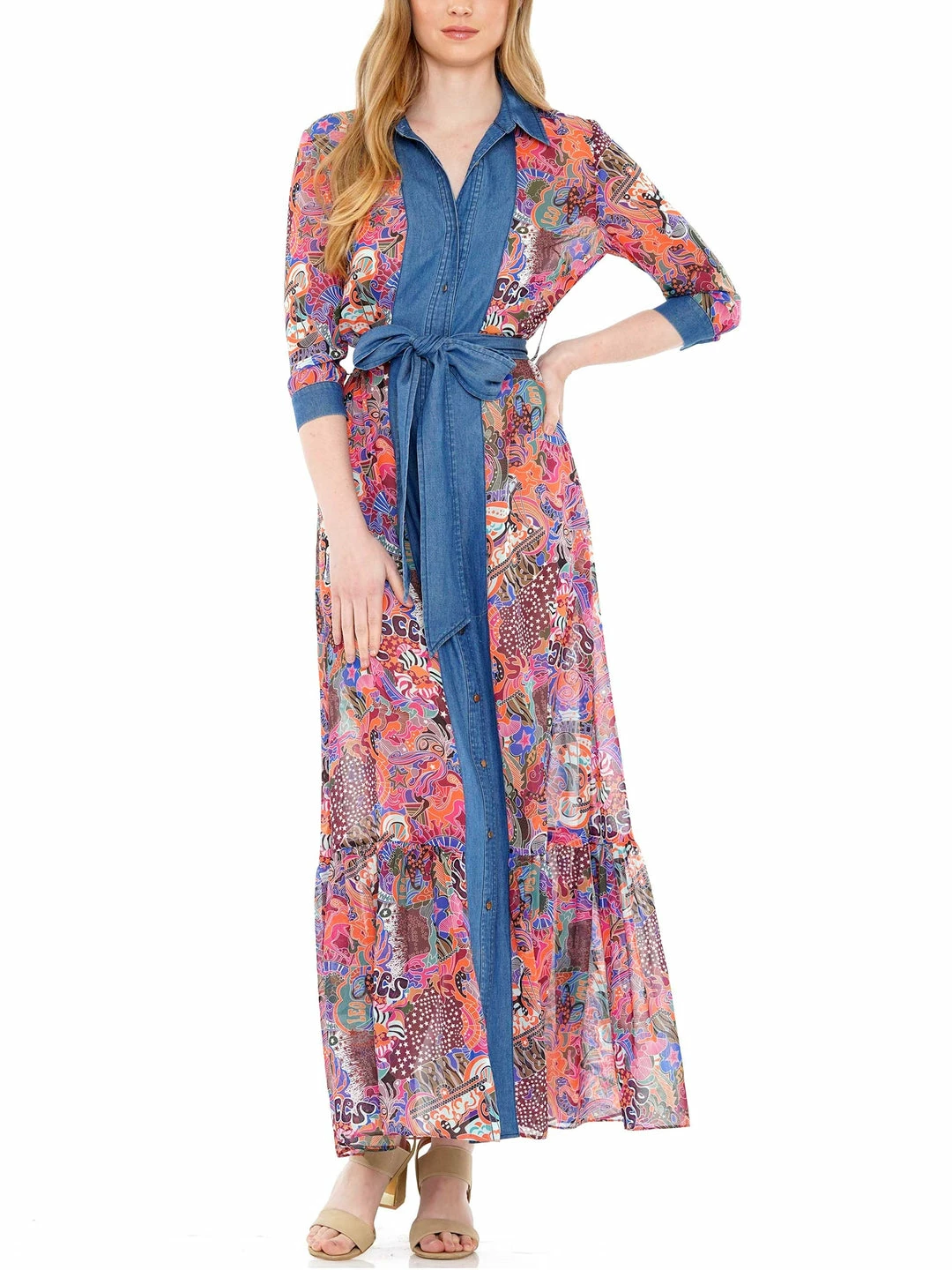 Why Dress DRESSES Print Mixed Media Shirt Dress