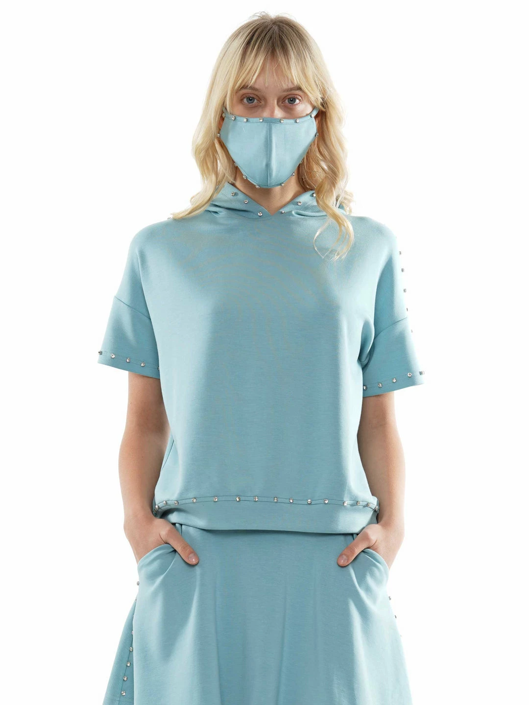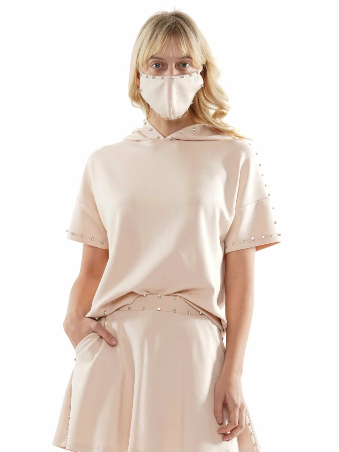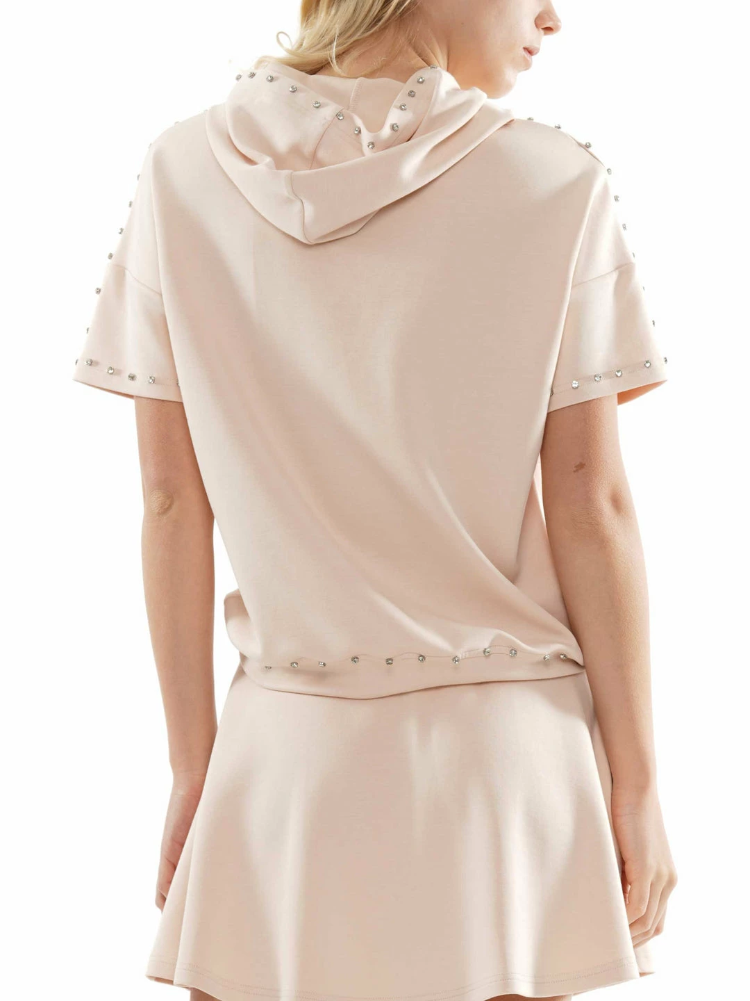 Why Dress Gem Stone Embellished Short Sleeve Hoodie