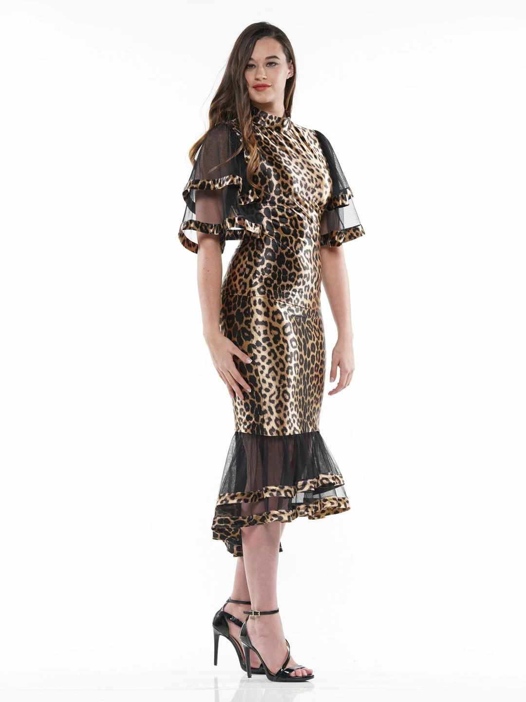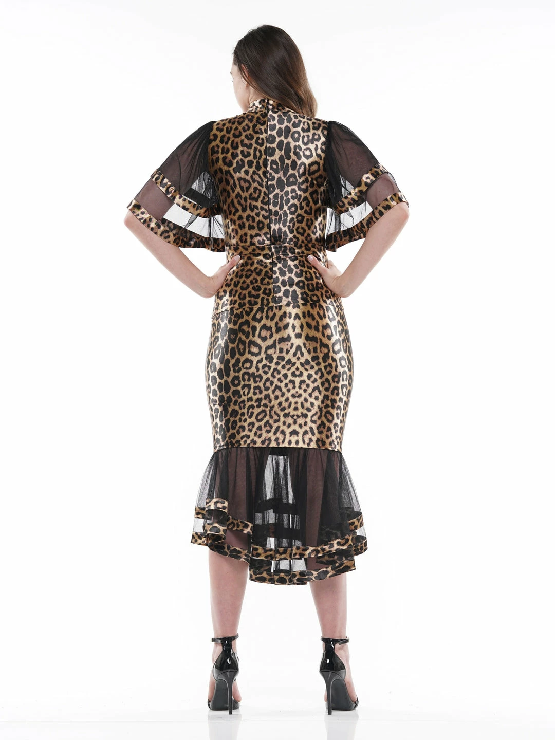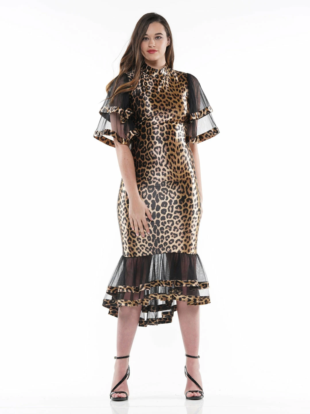 Why Dress Leopard Fabric Ruffle Detail Midi Length Skirt