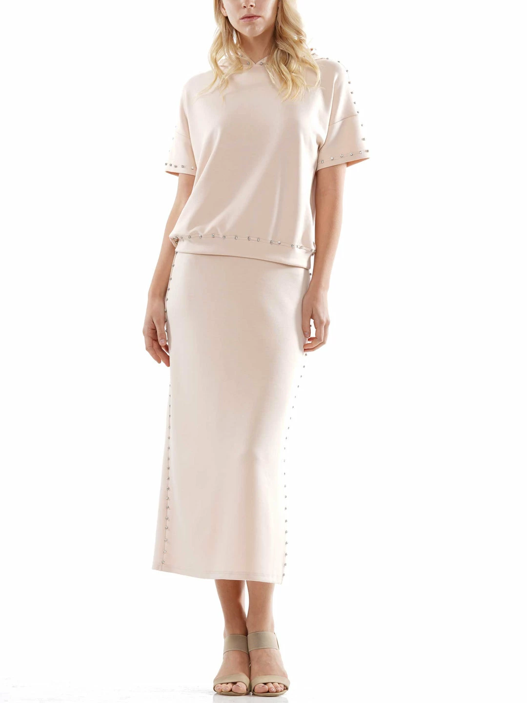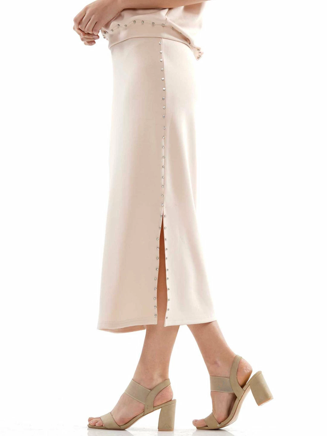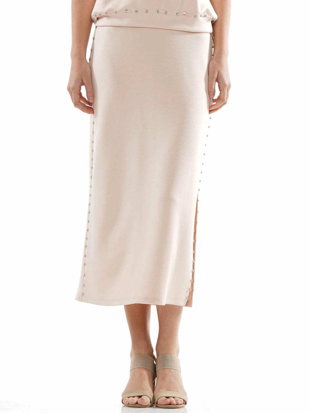 Why Dress NEW ARRIVALS Light Lyocell Side Slit Skirt With Gemstone