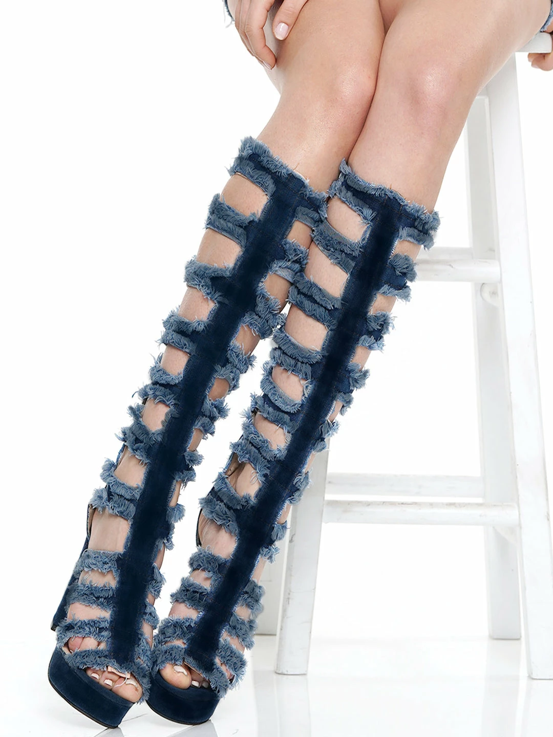 Why Dress PANTS PEEP TOE HOLLOW OUT CHUNKY HEEL DENIM SANDAL