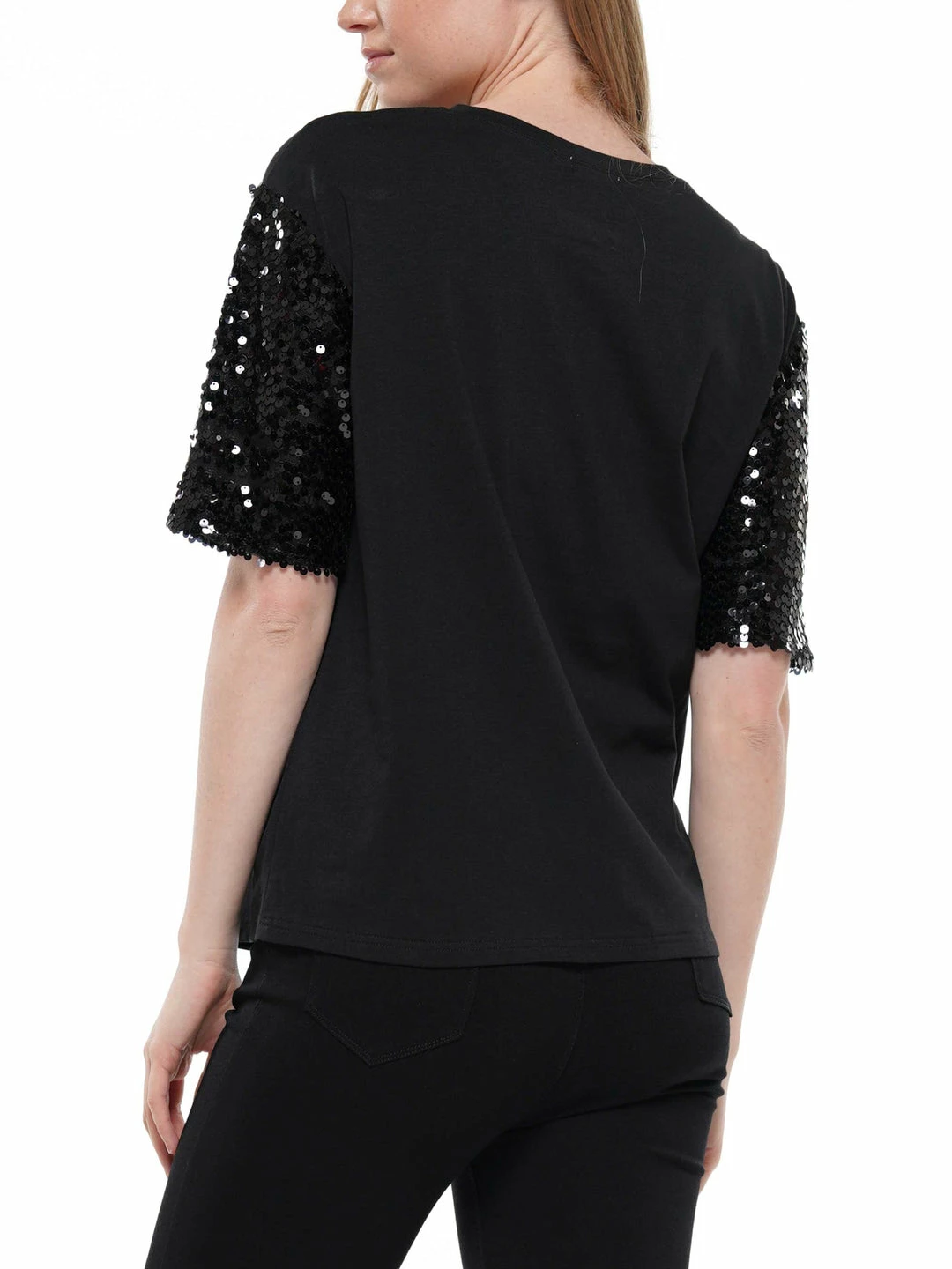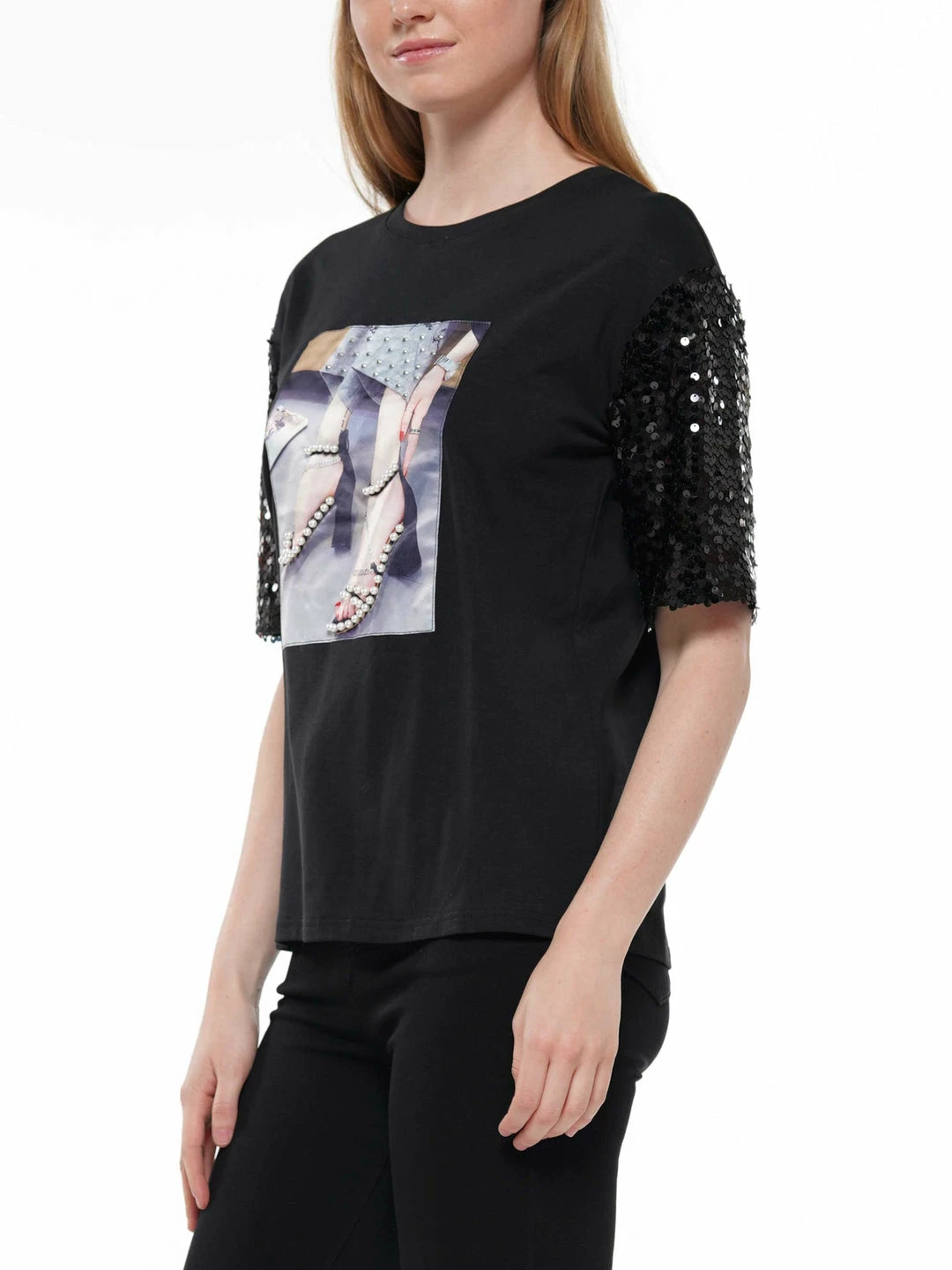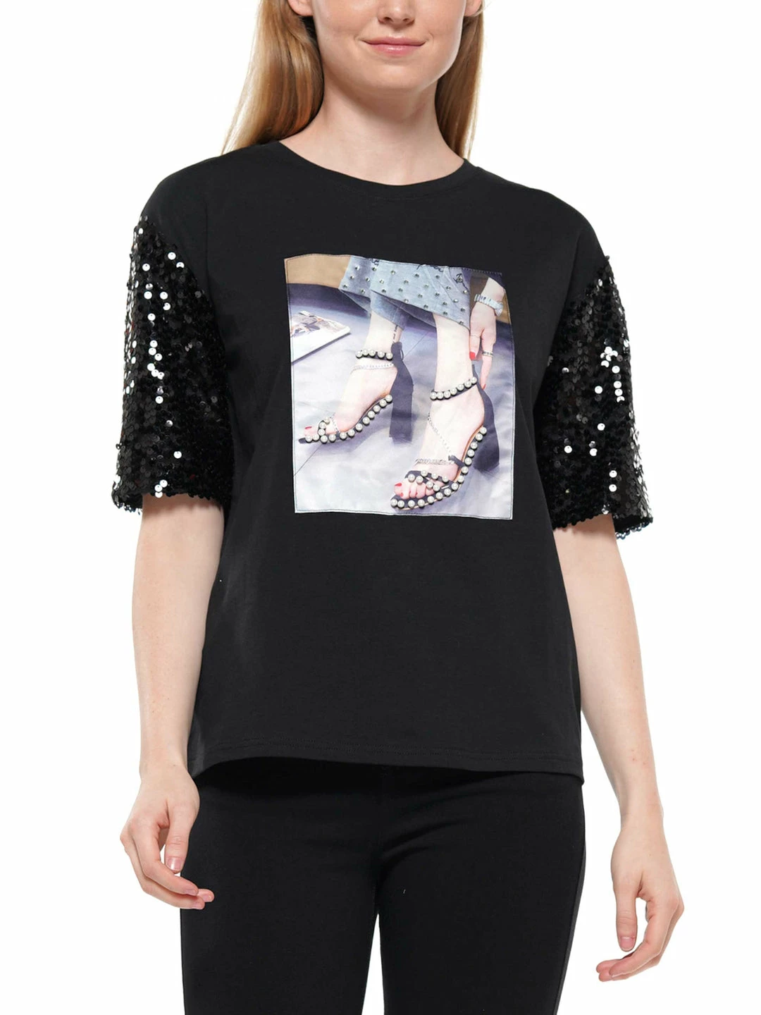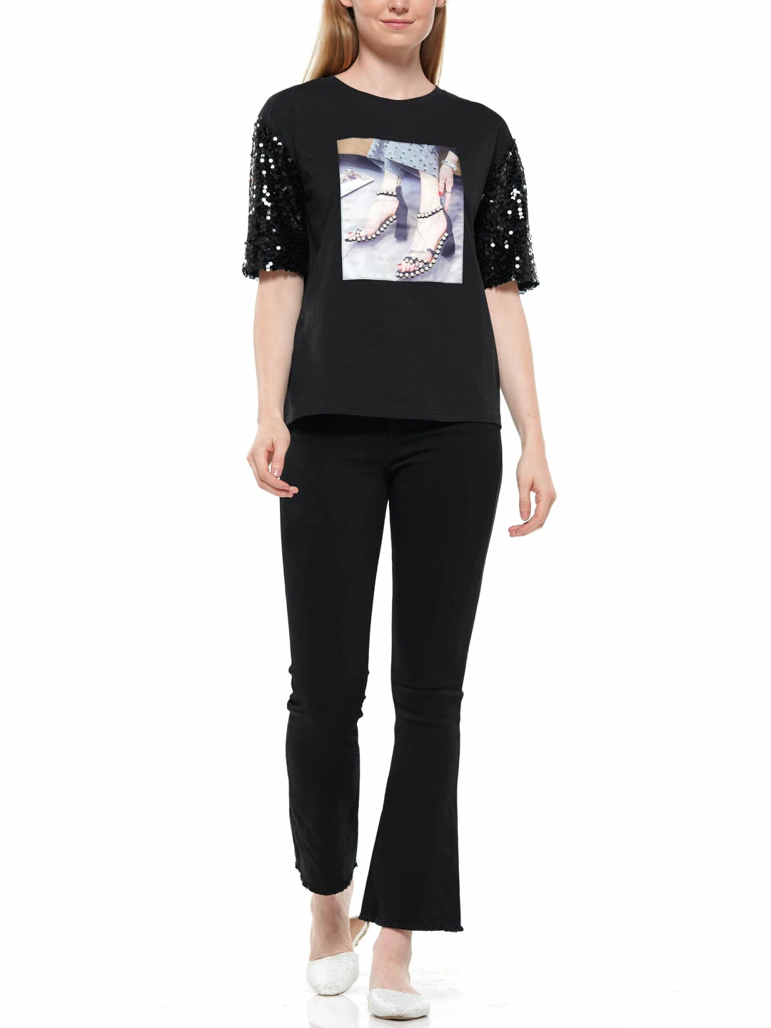 Why Dress Sequin Sleeve Shoe Patch T-shirt