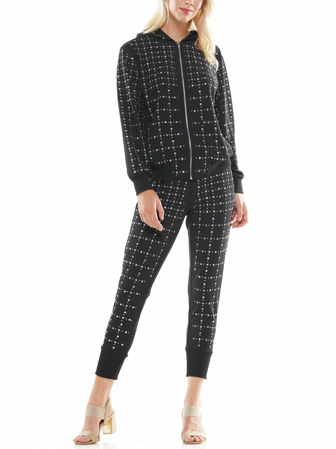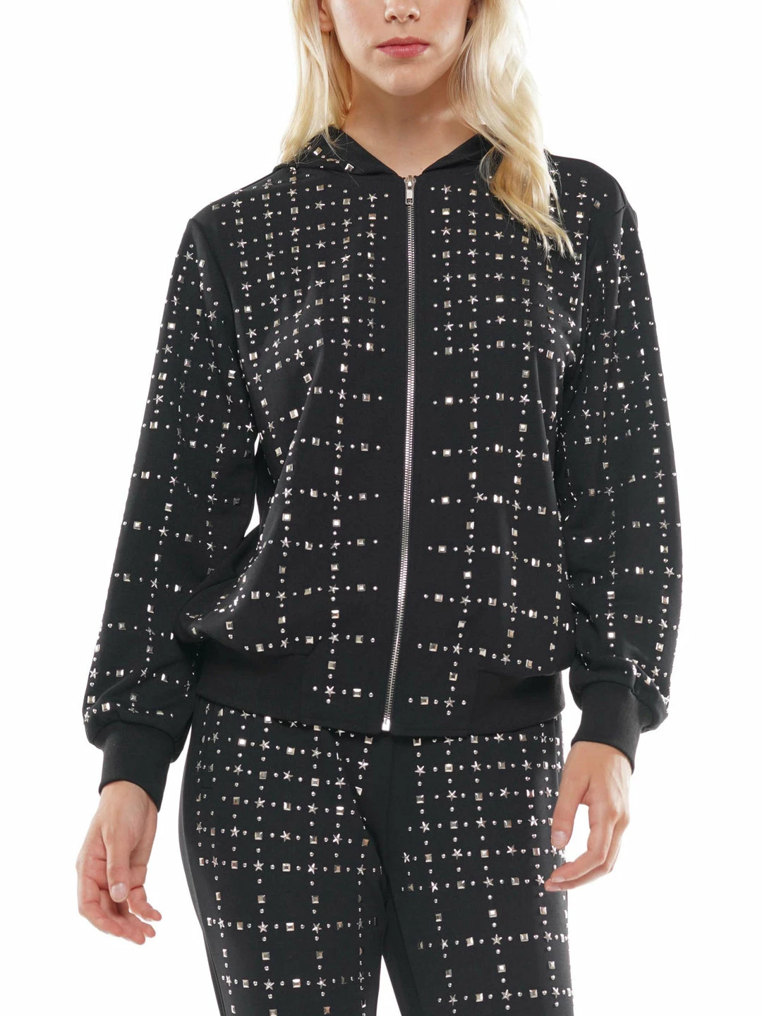 - Silver star stud hoodie jacket
